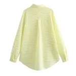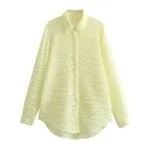 This light yellow shirt is made of premium fabric with a distinctive textured feel. The delicate and orderly texture spreads evenly, adding elegance and refinement. The textured fabric enriches the visual layering and offers a unique tactile experience.