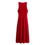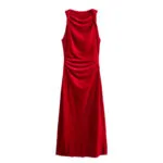 This Elegant dress is a stunner for The sleeveless design and maxi length create an elegant silhouette. In vibrant red, it looks sexy and generous. The ruched detailing at the waist flatters the figure, while the mock neck with a draped neckline on the chest adds a touch of allure.