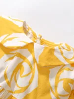 This charming long sleeve dress for girls is made of soft, breathable cotton fabric, ensuring comfort and warmth for the autumn season. The vibrant yellow dress features a bold white rose print, giving it a lively and elegant look. The dress is designed with a delicate collar and button closure at the back for easy wear. Perfect for a variety of occasions, this dress will make your little one feel like a princess. Whether it’s for a family gathering, a day out, or a special celebration, this beautiful cotton dress is a must-have addition to your child’s autumn wardrobe.