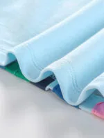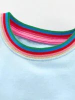 This vibrant and playful long-sleeve dress is perfect for your little one. Designed with a beautiful rainbow print across the chest and colorful crayon-like patterns at the hem, it brings fun and creativity to every outfit. The dress features a comfortable and soft cotton fabric that is ideal for everyday wear. The elasticated collar adds a colorful touch, while the loose fit ensures comfort and freedom of movement. Perfect for casual outings, family gatherings, or any day that calls for something cheerful, this dress is a great addition to your child’s wardrobe.
