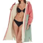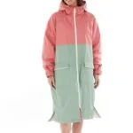 Pink and Green Waterproof Changing Robe with Warm Sherpa Lining – Functional, Stylish, and Perfect for Outdoor Adventures and Beach Days