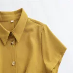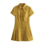 Pleated Shirt Dress Women Collar Button Mini Dress Short Sleeve Office Beach Dress