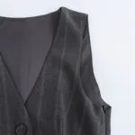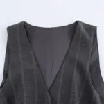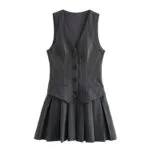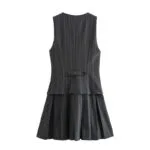 This two – piece suit set featuring a sleeveless V – neck mini dress.The back strap detail provides a unique and eye – catching element, setting it apart from ordinary dresses.Box pleats at the hem add movement and dimension, making every step more graceful.