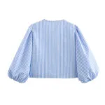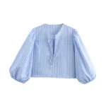 Custom Shirt Striped Crop Long Sleeve Blouse – Round Neckline