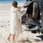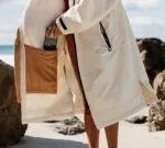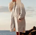 Stylish Two-Tone Waterproof Changing Robe with Warm Sherpa Lining, Ideal for Beach, Outdoor Adventures, and Daily Wear