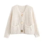 French Simple Color Clash Dress Beige Elegant Knit Dresses