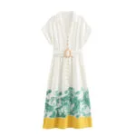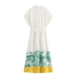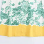 The vibrant floral print combined with the eye-catching contrast colors makes it visually appealing. Its belt loops at the waist allow you to adjust the fit as you like, flattering your figure. The flowing large skirt adds a graceful touch.